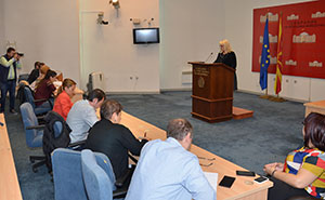 Во пресрет на 15. Есенска сесија на Парламентарното собрание на ОБСЕ, која ќе се одржи од 29 септември до 2 октомври во Скопје, во хотелот „Холидеј Ин“, потпретседателката на Собранието на Република Македонија и шеф на Делегацијата во Парламентарното собрание на ОБСЕ, г-ѓа Рената Дескоска, одржа прес-конференција.