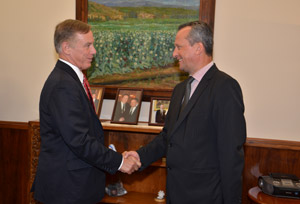 The President of the Assembly of the Republic of Macedonia, Mr. Trajko Veljanoski met the Senior Member of the Directors' Board of NDI, Mr. Hauard Dean, the Regional Director of NDI for Central and Eastern Europe, Mr. Robert Benjamin and the NDI Director for Macedonia, Mr. Chris Henshaw.