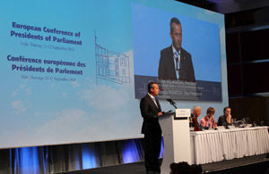 Дозволете ми, најпрво да изразам благодарност до претседателот на Стортинг на Норвешка, г. Олемик Томесен, за организацијата на Европската конференција на претседатели на парламенти и за гостопримството на кое наидовме во Осло.