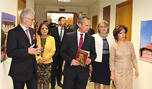 Почитувани гости, ја поздравувам оваа можност и ве поканувам да уживате во овие значајни сведоштва за големата љубов на Светиот Климент кон Бога, писменоста и просветителството. Се надевам дека преку оваа изложба посетителите ќе се запознаат и ќе го збогатат своето знаење за богатото културно наследство на Република Македонија, како и за културата и религијата гледано во целост.“