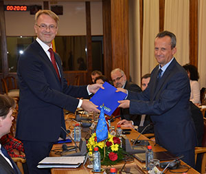 Евроамбасадорот г. Аиво Орав официјално го предаде Извештајот на Европската комисија за напредокот на Република Македонија за 2015 година на претседателот на Собранието на Република Македонија, г. Трајко Вељаноски.