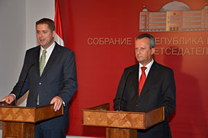 Претседателот на Претставничкиот дом на Парламентот на Канада, г. Ендру Шир на средбата изрази благодарност за топлиот прием во Македонија и можноста да се обрати пред пратениците на Собранието. Тој нагласи дека Канада високо го цени учеството на македонските војници во меѓународните мировни мисии и истакна дека Канада дава перманентна поддршка за членство на Република Македонија во НАТО.