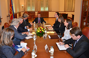 На средбата се разговараше за актуелната политичка состојба и случувања во Република Македонија. Соговорниците разменија мислења за бојкотот на опозицијата на работата на Собранието како институција која има пресудно значење во градењето на демократијата и функционирањето на едно општество. Членовите на Делегацијата искажаа посебен интерес во однос на правната регулатива во Република Македонија која се однесува на учеството на пратениците во работата на Собранието и прашањето за одземање на пратеничките мандати.