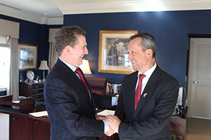 Тој искажа интерес за моменталната политичка состојба во Република Македонија. Претседателот Вељаноски го информираше за политичката криза со која нашата држава се соочува во изминатиот период и за постигнатиот политички договор меѓу партиите.