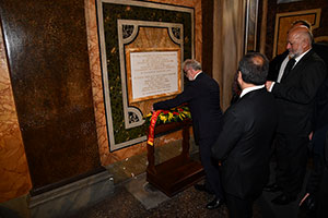 Во рамките на Манифестацијата во чест на Св. Кирил,делегациите на Република Северна Македонија и на Република Бугарија, предводени од претседателот Талат Џафери и претседателката Цвета Карајанчева, попладнево положија свежо цвеќе пред плочите поставени во чест на Св. Кирил, во Базиликата Санта Марија Маџоре, во Рим.