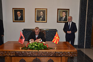 Претседателот на Собранието на Република Албанија, г. Грамоз Ручи, се потпиша во книгата за впечатоци.