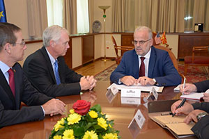 Високиот гостин истакна дека е дојден во Република Македонија да ја пренесе и да ја потврди поддршката што Соединетите Американски Држави ја даваат на нашата држава за надминување на последната пречка кон полноправното членство во НАТО, подвлекувајќи дека членството во НАТО ја гарантира безбедноста на Република Македонија, а со тоа се поттикнува растот на економијата, што всушност е и примарната цел. Тој, исто така, се заблагодари за досегашниот придонес на нашата земја во НАТО мисиите и за определбата за трошење на 2% од БДП за одбраната.