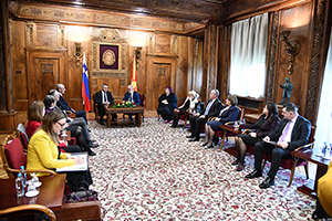 Претседателот на Собранието Талат Џафери, денеска оствари средба со Делегација од Република Словенија, предводена од претседателот на Државниот збор Дејан Жидан, кој престојува во официјална посета на Република Северна Македонија. На средбата присуствуваа и потпретседателот на Собранието Зеќир Рамчиловиќ и претседателот на Пратеничката група за соработка со Парламентот на Република Словенија, г-ѓата Нада Ципушева.