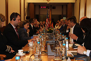 Претседателот на Собранието, г. Талат Џафери ги запозна соговорниците со постојните активности во Собранието на Република Македонија, со работата на пратениците во делот на реформистите закони, особено во сегментот одбрана и разузнавање, како и со активностите и обврските на Собранието и пратениците во јавната пропаганда во пресрет на референдумот. Притоа истакна дека и понатаму постои широк политички консензус за евроатланската иднина на Република Македонија и изрази очекување дека сите пратеници ќе го препознаат моментумот и ќе дадат силна поддршка на овие процеси, пред сè, имајќи ги во предвид интересите на сите граѓани на Република Македонија.