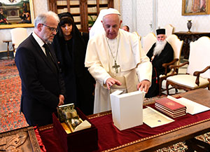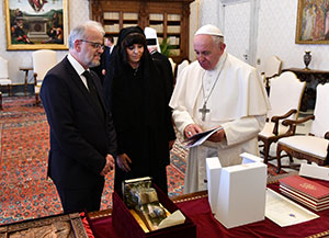 Папата Франциск на претседателот Џафери му подари скулптура на која има гулаб и маслинова гранка кои го симболизираат мирот.