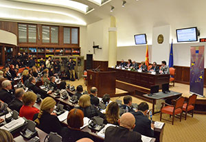 Со особена чест, во својство на претседател на Собранието на Република Македонија, ја користам можноста од мое име и од име на пратениците во Собранието на Република Македонија, да го поздравам овој почитуван пленум.