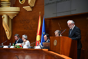 На самиот почеток, сакам да го изразам моето задоволство што учествувам на овој настан. Подготвувајќи се за денешнава конференција, се потсетив на едно мое претходно обраќање на слична тема пред две години. Дозволете да цитирам само еден мал дел: „Кога ќе се спомне парламентарната демократија, се мисли на работењето и функционирањето на Собранието. Меѓутоа, исто така верувам дека сите ќе се согласиме дека парламентарната демократија е неделив процес и мора да биде сеприсутна, како во сите три гранки на власта, така и во општеството во целост. Односно, не можеме да зборуваме за демократија во Собранието, ако имаме најблаго речено, отуѓена извршна власт. Во исто време, не можеме да зборуваме за парламентарна демократија, ако немаме владеење на правото, функционална правна држава и секако, транспарентност и отчетност. И на крајот, не можеме да зборуваме за парламентарна демократија, без вклученост на невладиниот сектор, експертската јавност и граѓанинот како поединец“, крај на цитат.