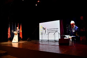 Кога зборувам за издигнувањето и развојот, мислам на многуте вредности и всушност институциите кои сега го живеат полнолетството меѓутоа и оние кои се на зачетокот, како што е Институтот за духовно и културно наследство на Албанците, на чие што раководство сакам да му честитам за нивната неуморна работа и за вредниот придонес што тие го даваат во насока на збогатување на културното и историското наследство на Албанците во овој дел на Балканот, чувајќи ги, негувајќи ги и промовирајќи ги вредностите од минатото и вредностите што ќе се создадат во иднина во насока на проширување на хоризонтот на делување. За поздравување е обемот и разновидноста на активностите што ги развива овој институт, се разбира секогаш во соработка со локалните институти, организации и академски институции од земјата и од странство, но над сè, научната и академската работа што трудољубиво се спроведува. Во иста линија е и основањето, консолидирањето и се надеваме набрзо и првите резултати од Агенцијата за примена на јазикот што се основаше пред една година. Почитувани, дозволете да го делам со вас чувството на гордост што го чувствувам во однос на востановувањето на Државната награда „22 Ноември“ за признание кон луѓето од политичкиот, културниот и социјалниот живот во Република Северна Македонија, кои придонеле во унапредувањето на меѓучовечкиот соживот и взаемното разбирање помеѓу припадниците на различните заедници, култури и религии во земјата и што оваа година, оваа награда оди во рацете на почитуваниот научник, историчар и хуманист Давид Хосафлок и на просветните ветерани, Кимете и Аднан Агаи.