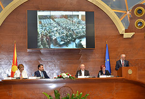 Во јуни оваа година, упатив писмо до генералниот секретар на ИПУ, со кое информирав дека Собранието на Република Македонија ќе организира пригоден настан на 15 септември 2017 година, во чии рамки ќе бидат прифатени „Заедничките принципи за поддршка на парламентите“, и ете, денеска, со големо задоволство, Собранието на Република Македонија, и јас лично, како актуелен претседател, имаме чест да бидеме домаќини на овој значаен настан за демократија и парламентаризмот воопшто, а посебно за нашата млада демократија.