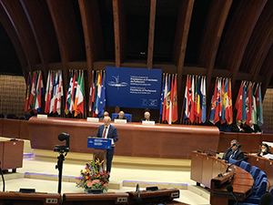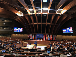 Дозволете во мое лично име и од име на пратениците во Собранието на Република Северна Македонија да го честитам одбележувањето на 70 годишнината од основањето на Советот на Европа, водечката организација за човекови права во континентот во која членуваат 47 европски земји кои освен тоа што се наоѓаат на заеднички континент, имаат уште едно нешто заедничко и многу важно, односно, потписнички се на Европската конвенција за човекови права која што конвенција всушност е договор за заштита на човековите права, демократијата и владеењето на правото. Република Северна Македонија е членка од 1995 година и за цело тоа време активно соработува со сите тела на Советот на Европа.