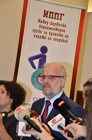 На шести септември, овде, во Собранието на Република Македонија, беше формирана Интерпартиската парламентарна група за правата на лицата со попреченост. Тоа е група која не е класично парламентарно тело, како што се на пример комисиите, туку пред сè, е парламентарна лоби група која и по името јасно индицира дека ја надминува партиската припадност на членовите, но и онаа класична политичка поделеност која ја има во секој парламент, а тоа е парламентарно мнозинство, односно власт и опозиција. И, тоа што мене како претседател на Собранието ме радува, е фактот што моите колеги пратеници, членови на оваа Интерпартиска лоби група, заедно со нашите пријатели од Мисијата на ОБСЕ во Скопје и невладината организација Полио Плус, за дваесетина дена ја организираат оваа дебата.