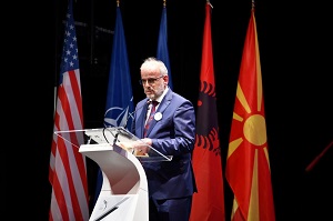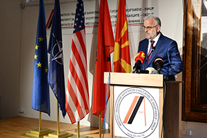 Дозволете ми да го изразам задоволството што го имам денес, кога ја славиме 111-годишнината од Битолскиот конгрес и унифицирањето на албанската азбука, да ве поздравам во својство на претседател на Собранието на Република Северна Македонија и во име на моите колеги пратеници да ја искористам оваа можност да го честитам најважниот ден во историјата на политичкиот и културниот развој на Албанците, бидејќи одлуките од овој конгрес претставуваат еден од столбовите што помогнаа во издигнувањето за едно скалило повисоко на албанската култура и образование, но и понатамошното консолидирање во насока на развојот и напредокот на Албанците, со јасно избирање на ориентацијата и насоката што ќе ја следат во иднина. И овој чекор, колку и да изгледа скромен за старите светски цивилизации, сепак претставува придонес и во целокупниот развој на човештвото.