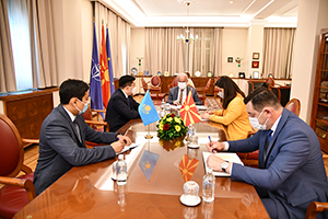 Амбасадорот Абдрашов се заблагодари на топлиот прием во домот на демократијата и истакна дека, односите меѓу Република Казахстан и Република Северна Македонија се пријателски. Накратко информираше за справувањето на Парламентот на Република Казакстан со предизвиците на пандемијата во изминатиот период и комплетираниот процес на вакцинирањето. Информираше и за потпишувањето на три клучни договори од правната сфера од страна на казахстанската Влада, а во однос на планот за потесна меѓупарламентарна соработка на ниво на Пратеничките групи за соработка која е од заемен интерес, изрази уверување дека таа ќе продолжи штом тоа го дозволат здравствените протоколи врзани за пандемијата со КОВИД-19. Неговата Екселенција подвлече дека неговата мисија ќе ја насочи кон зајакнувањето на економската соработка на двете земји, зголемувањето на трговската размена и иницирањето на инвестициски активности меѓу двете земји.