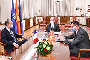 Воедно, претседателот го информираше амбасадорот за актуелните случувања на планот на европската перспектива на земјата, очекувањата од најавените состаноци на највисоките европски институции, како и поддршката на Франција и останатите земји-членки на напорите за отпочнување на меѓувладината конференција со нашата земја кон крајот на оваа година.