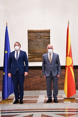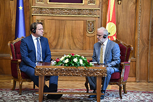 СРЕДБА НА ПРЕТСЕДАТЕЛОТ ЏАФЕРИ СО КОМЕСАРОТ ОЛИВЕР ВАРХЕЛИ