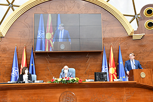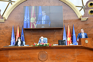 Комесарот Вархели срдечно се заблагодари за можноста да говори пред пратениците во Собранието, кое го оцени како привилегија на директно обраќање кон граѓаните на Република Северна Македонија. Според него, покрај Извештајот за напредокот и Стратегијата за проширување, во фокусот на Комисијата е предложениот економски план за регионот, што е особено значаен за натамошен развој на секоја земја поденинечно, но и посредно на Унијата во целост.