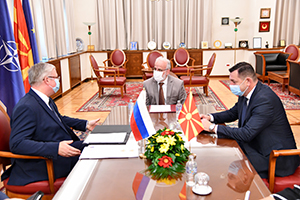 Амбасадорот Баздникин на претседателот Џафери му ги предаде честитките од претседателот на Државната дума на Руската Федерација Вјачеслав Володин за изборот за претседател на Собранието на Република Северна Македонија и Изјавата на Државната дума во врска со 75-годишнината од формирањето на Организацијата на Обединетите нации.