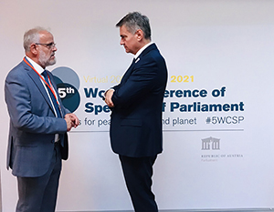 Претседателот на Собранието на Република Северна Македонија, Талат Џафери, денеска оствари средба со Волфганг Соботка, претседател на Австрискиот национален совет, на маргините на Петтата светска конференција на претседатели на парламенти, што се одржува во Виена, во заедничка организација на Интерпарламентарната унија (ИПУ) и Австрискиот парламент. Џафери му се заблагодари на Соботка за топлото гостопримство и одличната организација на првиот масовен меѓу-парламентарен настан од почетокот на пандемијата, кој што се одржува со физичко присуство на учесниците, со сеопфатни здравствени мерки и протоколи.