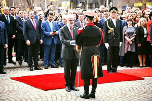 Дoзволете денес, кога одбележуваме една година од нашето полноправно членство во Северно - атлантската договорна организација - НАТО, да изразам искрени честитки до Вас, до институциите на Република Северна Македонија, до сите минати влади и политички чинители, и секако, до актуелните политички гарнитури, без оглед дали се од власта или опозицијата, бидејќи секој од нив, во својот домен, ја даде својата поддршка и имаше удел во статусот што го имаме и уживаме денес, односно 30-та земја членка на најмоќниот воено-политички сојуз, безбеден чадор и чувар на безбедноста на нашите граѓани и на територијалниот интегритет на Република Северна Македонија. Јас ја имав честа на 11 февруари 2020 година да ја водам свечената 133. пленарна седница по повод ратификацијата на Договорот и како што реков тогаш, ќе повторам и сега, „За нас, ова е историски ден!“ и, навистина, исправноста на таа одлука се потврди за време на оваа година а сигурно ќе се зацврсти уште повеќе во