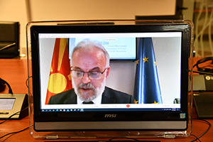 Дозволете да Ве поздравам сите што ја следите работата на 17. Конференција на Јадранско-јонската иницијатива и на Стратегијата на Европската Унија за Јадранско-јонскиот регион, овојпат преку видео-конекција, која со оглед на околностите и условите што ги наметнува пандемијата со КОВИД-19, а со оглед на значајноста на парламентарната поддршка, е најбезбедниот и препорачан начин на одржување на ваквите настани. Оваа година, како и минатата 2020 година кога се навршија полни 20 години од оформувањето на оваа иницијатива, фокусот е насочен кон подобрување на развојот и зајакнувањето на безбедноста на земјите во регионот, продлабочувањето на соработката помеѓу земјите членки, каде што и Република Северна Македонија има свој удел, како земја која е во процес на интеграција во Европската унија. Од многуте темелни и специфични прашања кои се дискутираат на средбите, овој пат, фокусот е ставен на тема која се наметна на некој начин принудно, со оглед на потребата од одржување на физичка дистанца со цел почитување на препораките за спречување на ширење на пандемијата, односно, „Кон дигиталното општество - можности и ризици за помладата генерација што влегува на пазарот на трудот“. Секако дека оваа промена кон дигитално општество ќе дојдеше кога тогаш, имајќи го предвид новото време, забрзаниот технолошки развој, глобализацијата, потребата од неограничен пазар на трудот, што секако е во тесна корелација со подготовката за конкурентност на тој пазар, односно, образовната, стручната подготовка на младите генерации за успешно вклучување на тој пазар на трудот. Реално, младите се соочуваат со низа проблеми за влез на тој пазар од типот на несоодветност на стекнатите знаења и вештини во формалниот образовен процес со реалните потреби, просечниот премин на младите лица од училиште на работа, што е околу 2,5 години, како и недоволниот и квалитетен број на слободни работни места. Тука се и младите кои се во меѓу период, односно, завршиле со образование, не се вработиле, не се на некоја доквалификација. А младите, како мотор кој што ги прави и води промените во општеството, се наша приоритетна обврска, односно, на креаторите на политиките и донесувачите на одлуките во земјите. Во тој контекст, во
