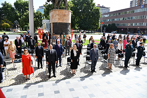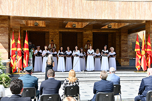 Денес, кога го одбележуваме Денот на Републиката, не може а да не се спомне јубилејот што следува на 8 Септември, односно, полни 30 години од прогласувањето на независноста на државата. Полни 30 години самостојна, суверена, слободна држава. Години во кои доживеавме многу, имавме победи и порази, имавме исправни одлуки, а понекогаш и погрешни, меѓутоа извлековме и поуки кои ни помогнаа да се преобразиме во подобро и понапредно општество. Оваа година прославуваме уште еден јубилеј, односно 20 годишнина од Охридскиот рамковен договор со кој што се постави новата структура за нашата меѓуетничка кохезија, со воспоставување на новите правила на општествена кохезија која ќе биде најцврстиот и најсолиден темел врз кој што ќе ја градиме сите заедно нашата евроатланска иднина. Со тој Договор на мирот, патот продолжи, затоа што има уште многу да се направи, има уште многу мостови да се изградат, мостови на пријателство, на добрососедство и мостови на поврзување, внатре и надвор од државата, во регионот и пошироко, меѓутоа, се е полесно кога сме сите заедно, сплотени, со заедничка визија и цел.