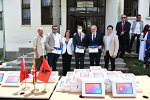 Иако оваа донација се реализира при крајот на учебната година, знам дека овие таблети ќе можете да ги користите и следните школски години. Тоа не значи дека оваа состојба на пандемија ќе трае, затоа што секако имунизацијата на населението ќе ги даде своите позитивни резултати и вие драги ученици ќе можете да се вратите во вашите ученички клупи, меѓутоа, овие уреди ќе можете активно да ги користите како нагледни средства и алатка за истражување и постигнување на уште подобри резултати. Тоа ќе ги направи горди вашите наставници, вашите родители и се разбира сите нас кои на некој начин придонесуваме во вашиот образовен развој.Драги ученици, ви посакувам успех во оваа и во сите наредни школски години!