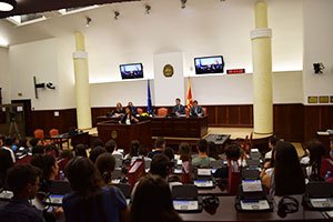 Преку симулација на законодавна постапка, учениците развиваа аргументи со кои се поддржува или побива предложеното законско решение, а на крајот имаа можност и да гласаат.